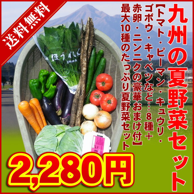商品名 九州の夏野菜セット【トマト・ピーマン・キュウリ・ゴボウ・キャベツなど…8種+赤卵・ニンニクの豪華おまけ付】最大10種のたっぷり夏野菜セット送料無料 2,280円 (通常3,280円) 内容量●下記の6種は必...
